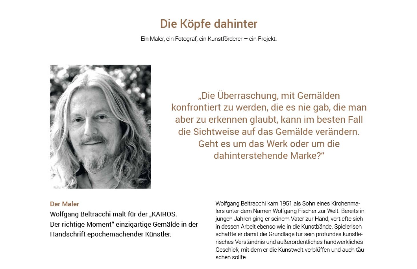 Die ersten Ausstellungen waren 2018 unter dem Namen „KAIROS. Der richtige Moment“ in Venedig und Hamburg zu sehen. Weitere Ausstellungen sind in Planung.